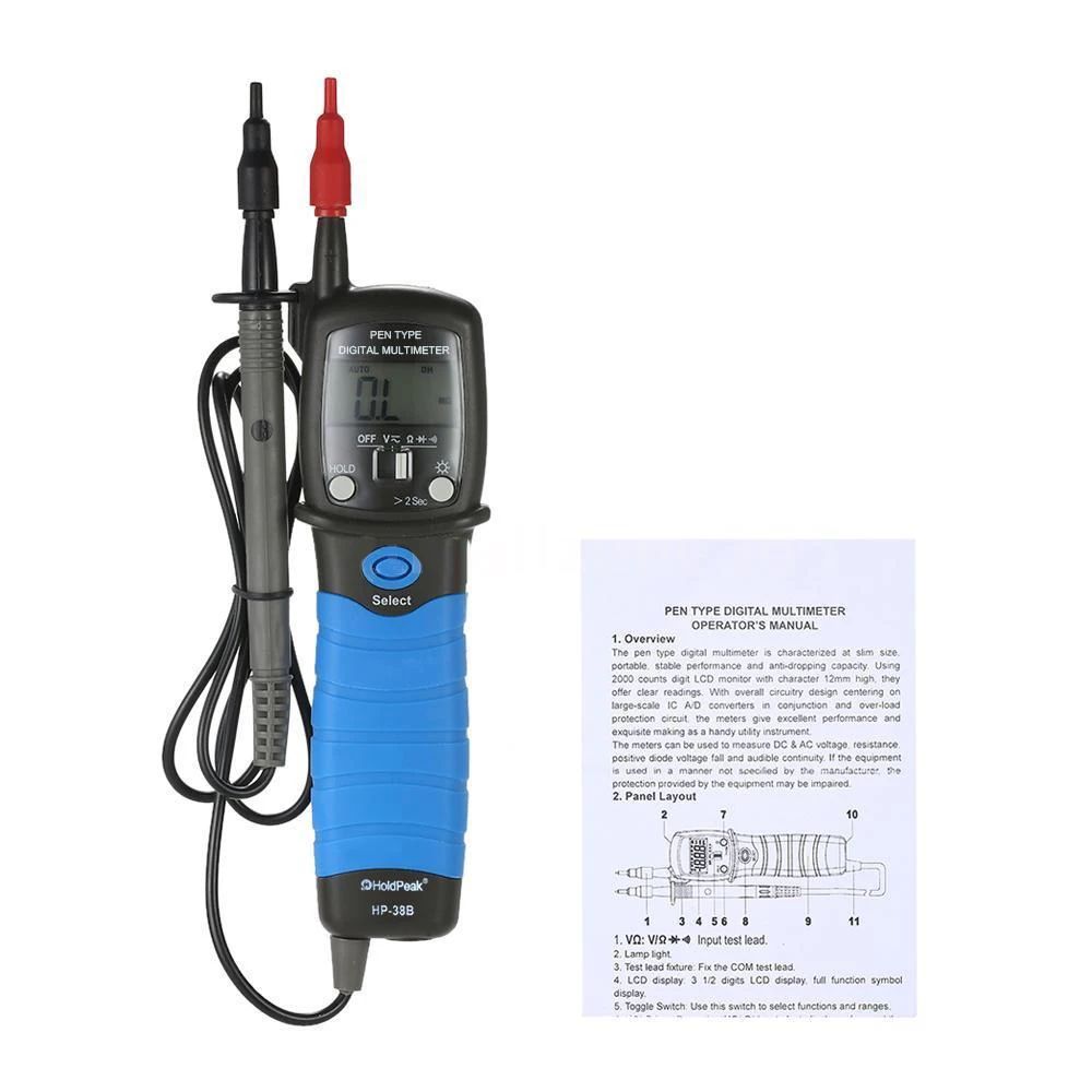 * Можно использовать для тестирования напряжения постоянного тока и переменного тока, сопротивления, положительного напряжения диода и звуковой непрерывности