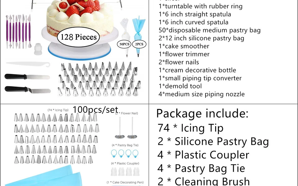 1. Набор насадок для украшения торта из нержавеющей стали, многоразовый, прочный и антипригарный, легко моется и обрабатывается. 2. Прочный, прочный, устойчивый к коррозии. Безопасный для всех потребностей в приготовлении пищи. 3. Прочный чехол для хранения хранит принадлежности для украшения тортов, защищенные в отдельных камерах и для использования. Удобный для хранения и защиты кондитерских наконечников в отдельных камерах, чистый и аккуратный. 4. Утилиты для выпечки, чтобы украсить ваши торты, кексы и печенье, подходит для профессионального использования или выпечки любимых DIY или детей начинающих.