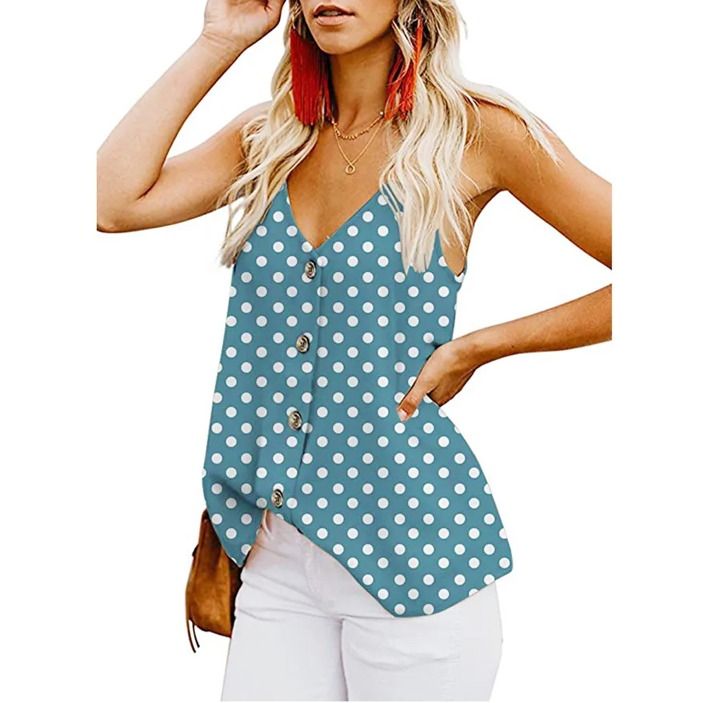 Женский топ на пуговицах с v-образным вырезом и принтом на бретелях, Свободные повседневные рубашки без рукавов