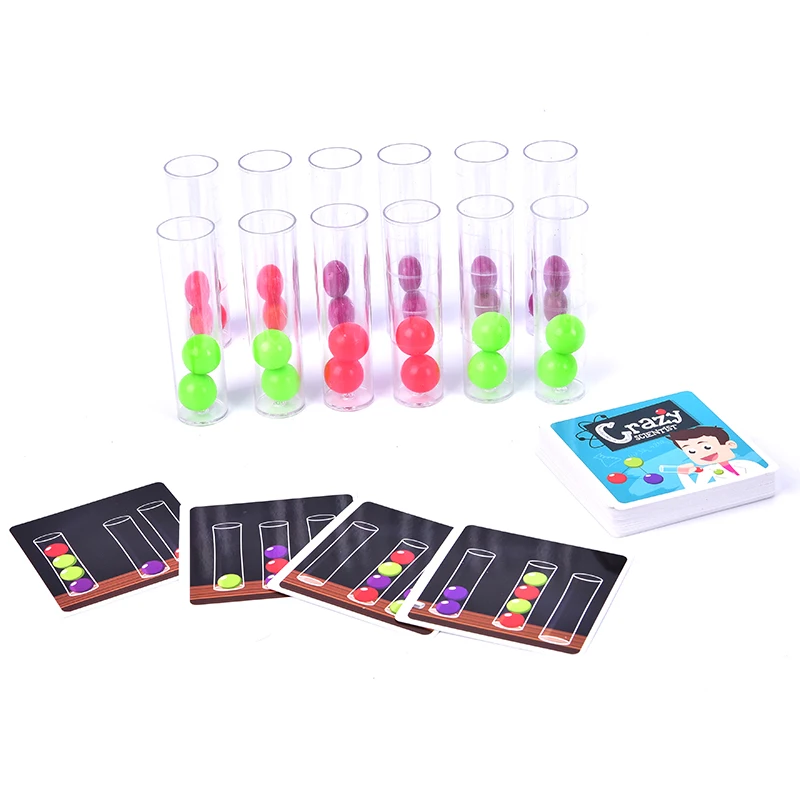 54 карточки для вызова + 24 шарика для экспериментов + 12 пробирки + 1 Инструкция по эксплуатации + 1 бумажная коробка