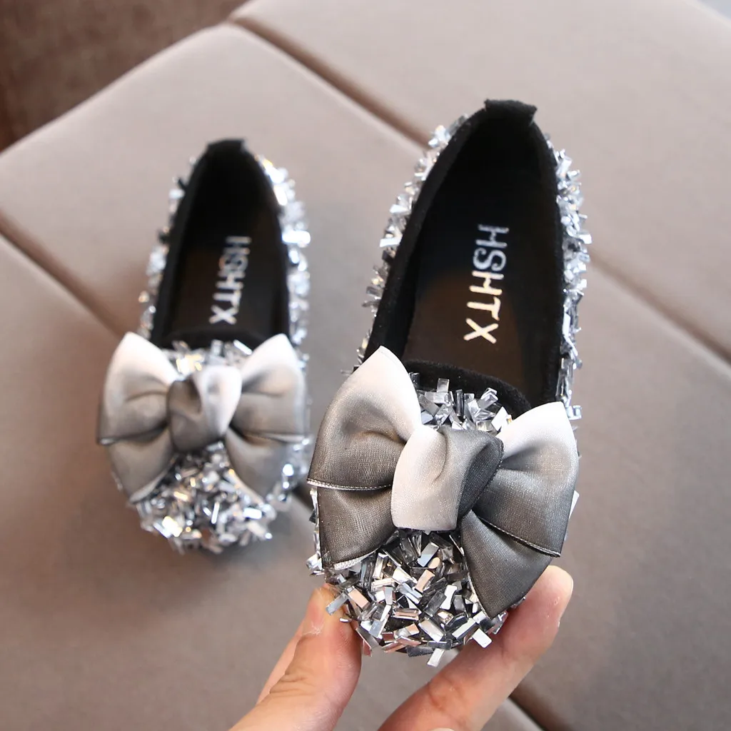 Повседневная обувь принцессы с бантом и кристаллами для маленьких девочек