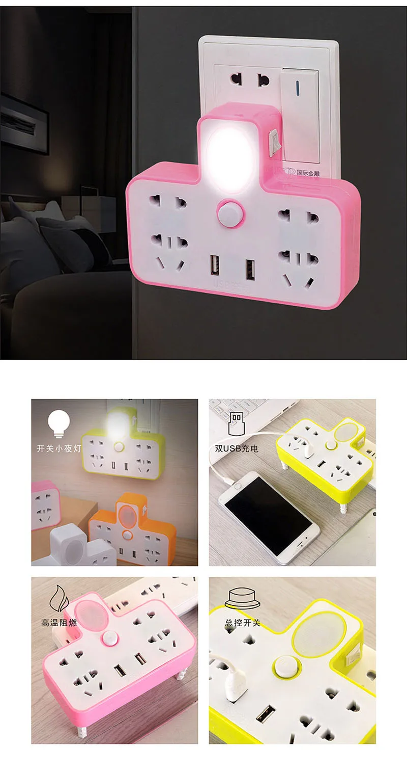 Новый розовый белый 5V 2.1A 2USB 1 до 3 Беспроводная полоса питания США ЕС многофункциональная настенная розетка адаптер удлинитель с светильник