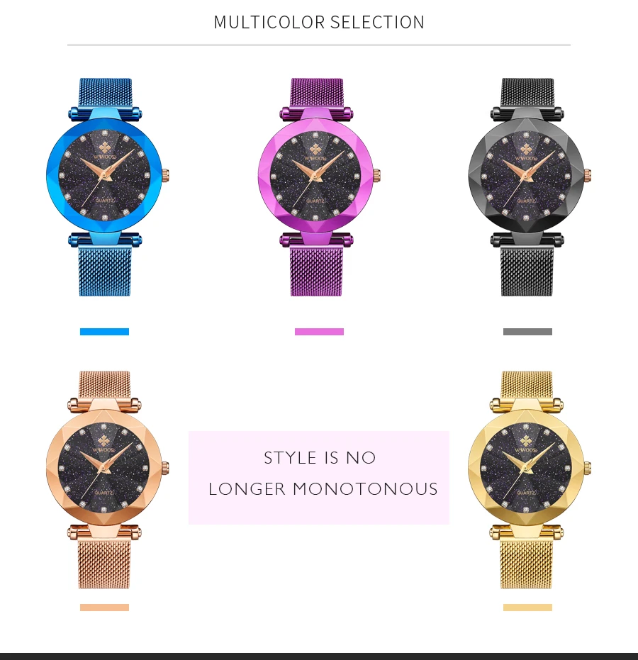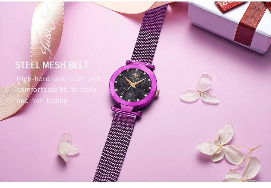 -Водонепроницаемость 3 АТМ/30 м (поддерживает душ в холодной воде, не используйте часы под водой); -Вакуумный Гальванизированный корпус из цинкового сплава; -Ремешок для часов из нержавеющей стали премиум-класса; -Модные подарочные часы для девочек;