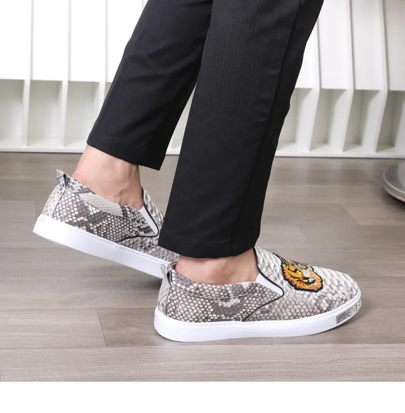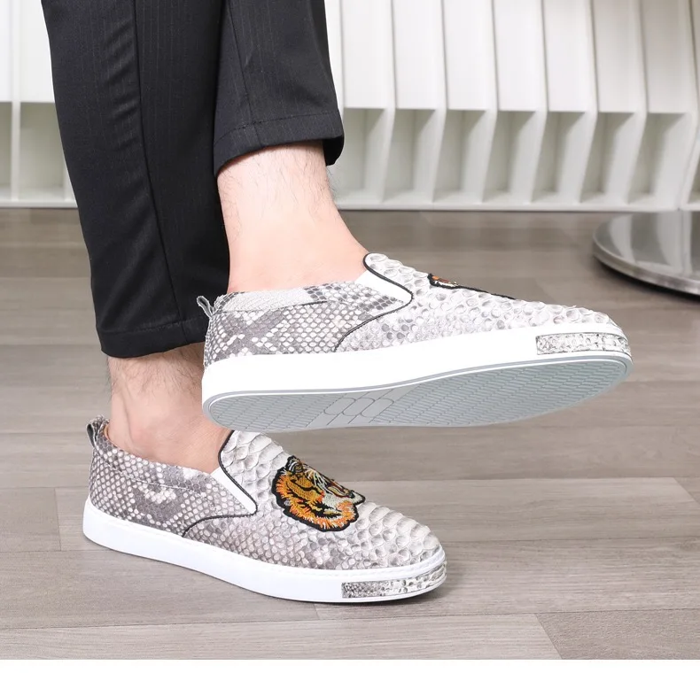 Стильные дизайнерские мужские повседневные шикарные лоферы на плоской подошве из натуральной кожи с тигром; Экзотические мужские слипоны из натуральной кожи