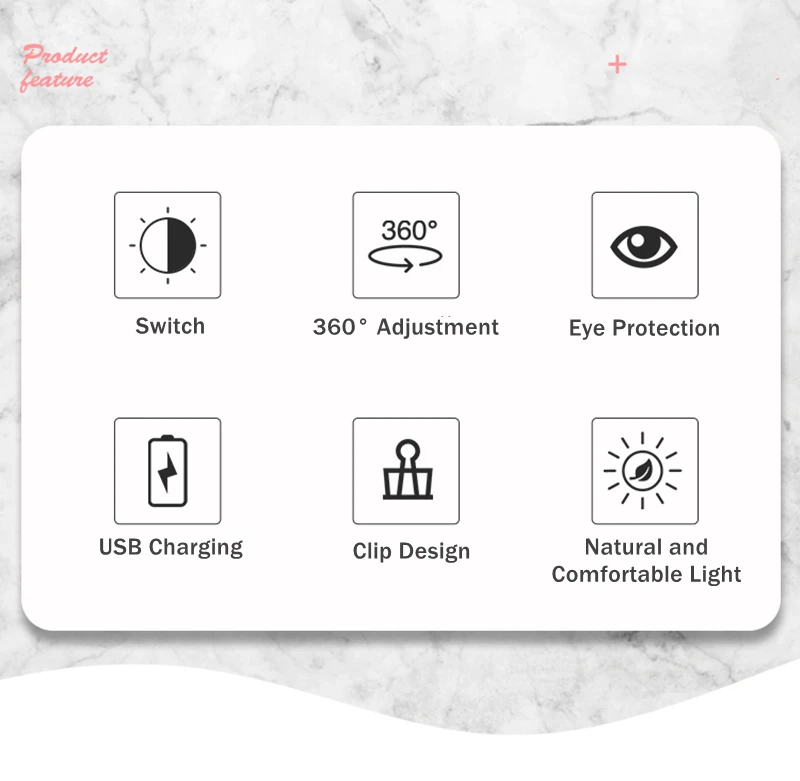 Закрепить на лампе может быть закреплен на спинку кровати, рабочий стол, в виде книжной обложки, ноутбук, и т. Д. Любая толстота доступная меньше, чем 2,36 дюйма, экономя пространство