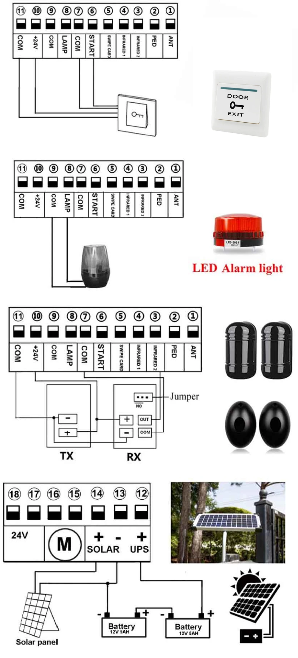 24VDC операторы скользящих ворот подключения солнечной системы схема: