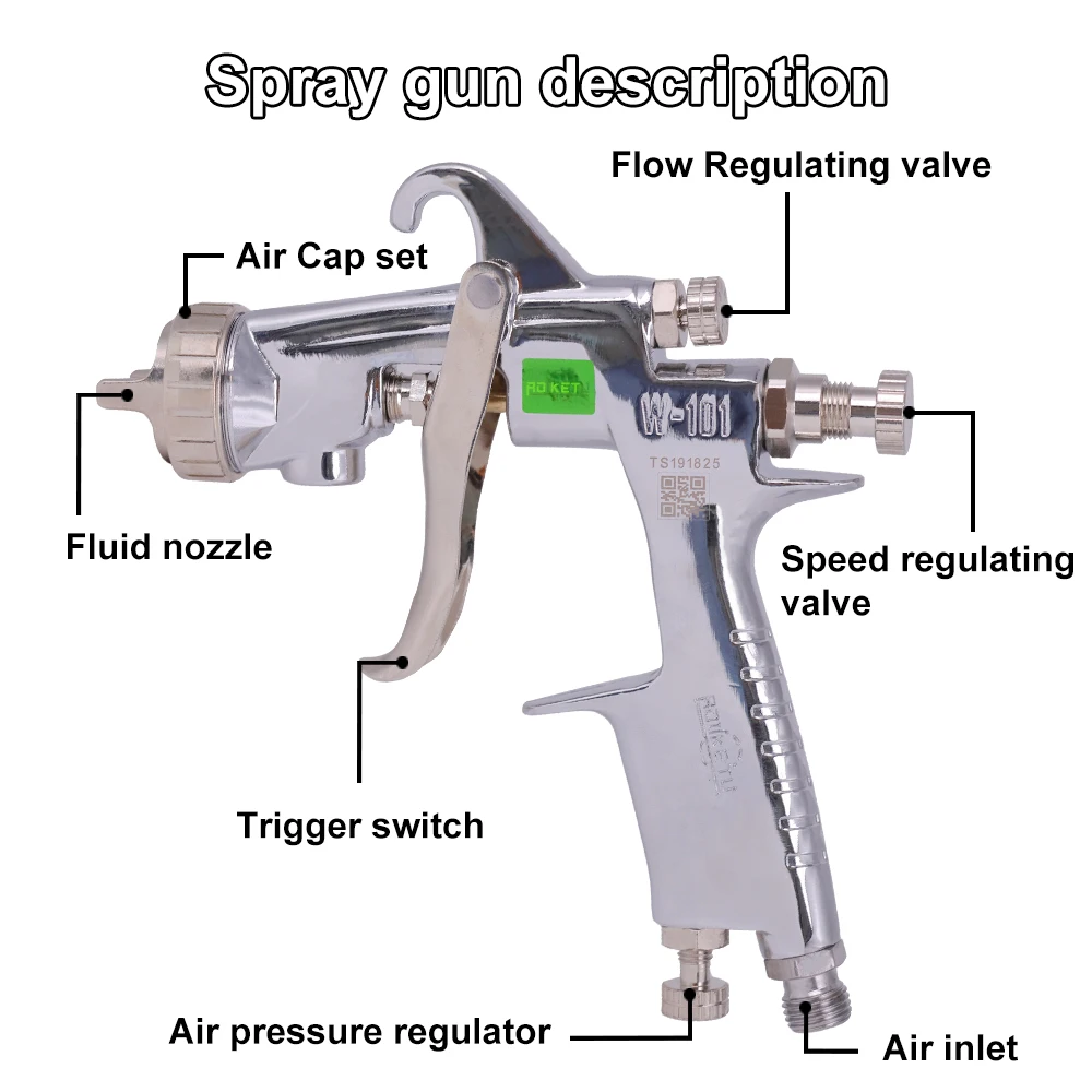 Давление распыления воздуха уменьшает 0,05 МПа, уменьшает брызги, экономит больше краски.