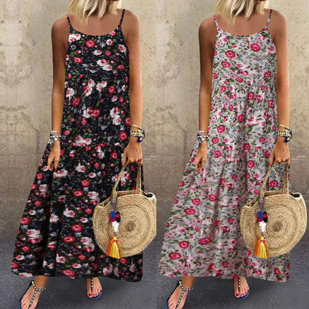 Женское повседневное свободное платье макси без рукавов в стиле бохо, льняное платье с принтом в стиле ретро, большие размеры