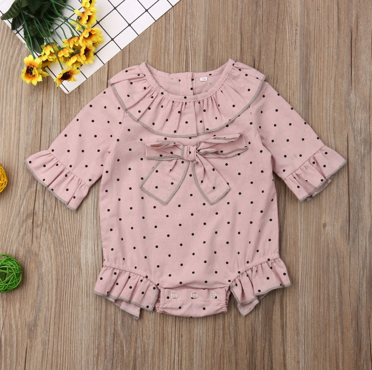 Комбинезон с длинными рукавами и бантом для новорожденных девочек, комбинезон, боди, костюм, штаны с принтом в розовый горошек, одежда, платье, пляжный костюм, хит продаж