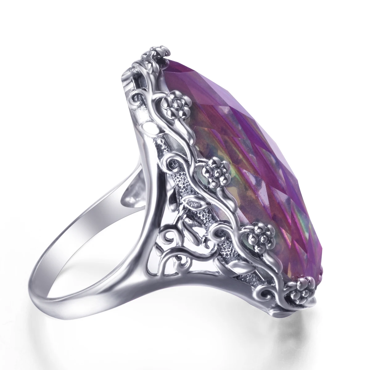 Очаровательные женские свадебные ювелирные изделия в стиле ретро с аметистом, большим камнем и розовым кристаллом из стерлингового серебра 925 пробы, обручальные кольца Bague Femme