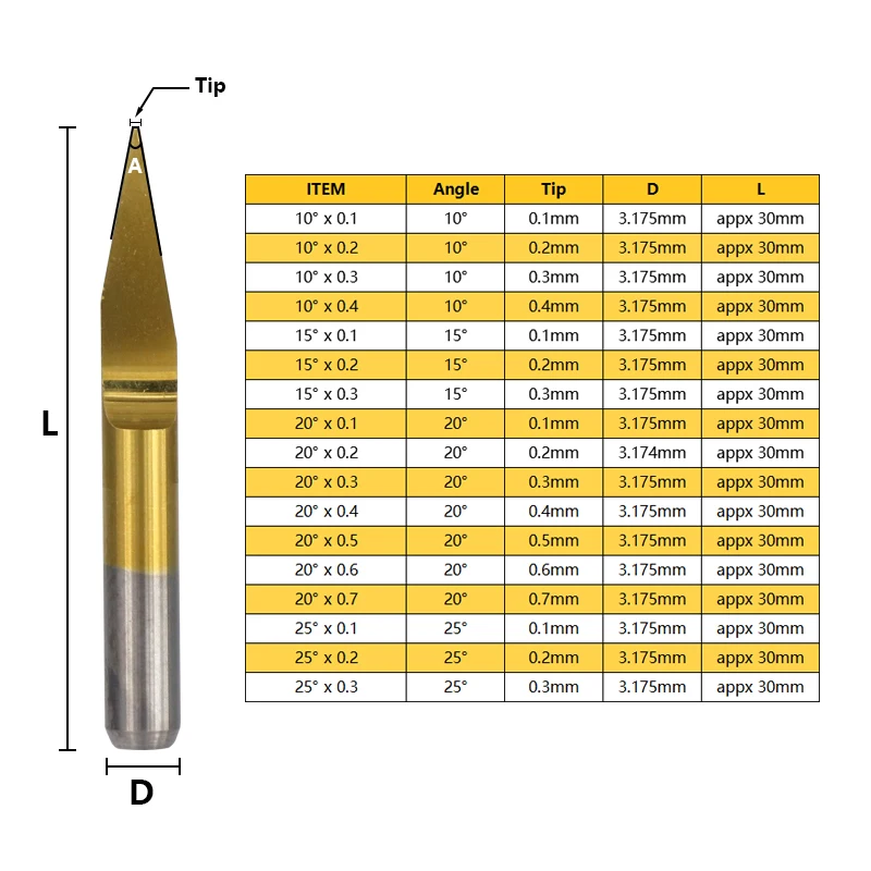 10 шт. 3,175 мм хвостовик в Форма гравирования печатных плат с алмазным напылением для 10/15/20/25 градусов с Оловянным покрытием PCB 3D фрезерный станок с ЧПУ маршрутизатор Инструмент