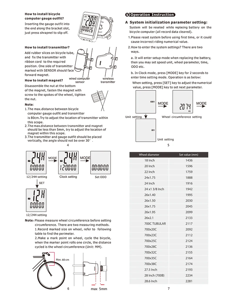 Расстояние между магнитом и датчиком <3 мм расстояние <60 см (беспроводной датчик фиксируется на передней вилке)