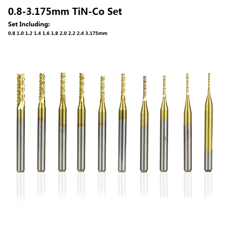 10 шт. 0,6-3,175 мм фрезерный станок с ЧПУ для фрезерования металла PCB Фрезерный резак титановое покрытие карбидная Концевая фреза