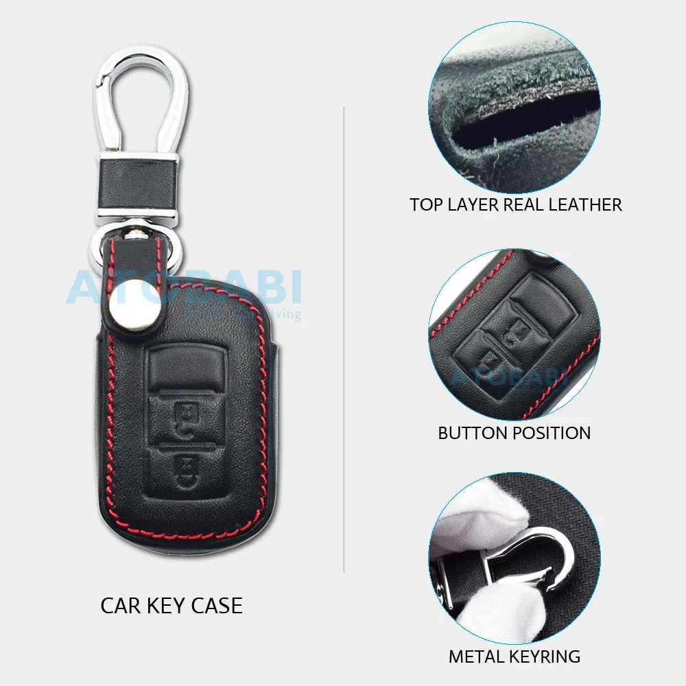 Особенности и технические характеристики: 1. Бренд: ATOBABI 2. Материал: верхний слой из натуральной кожи. 3. Кнопки: 2/3 4. Отличное соответствие размеру ключа и точному положению кнопки. 5. Защитите ваши автомобильные ключи от повреждений, следов, пыли и царапин. 6. Не влияет на сигнал автомобильного ключа. Посылка включает в себя: Чехол для автомобильного ключа-1 шт. 1 x кольцо для ключей (Автомобильный ключ в комплект не входит.)
