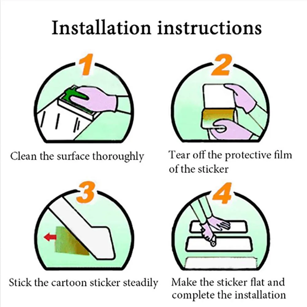 Простота установки: Просто снимите подложку и Наклейте на ровную поверхность, которую вы предпочитаете, вы можете закончить установку через несколько минут. Внимание: Очистите поверхность перед установкой путем удаления любых липидов или грязи.