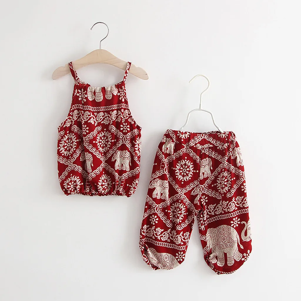 Топы на бретелях с принтом слона для маленьких девочек, штаны, комплект одежды