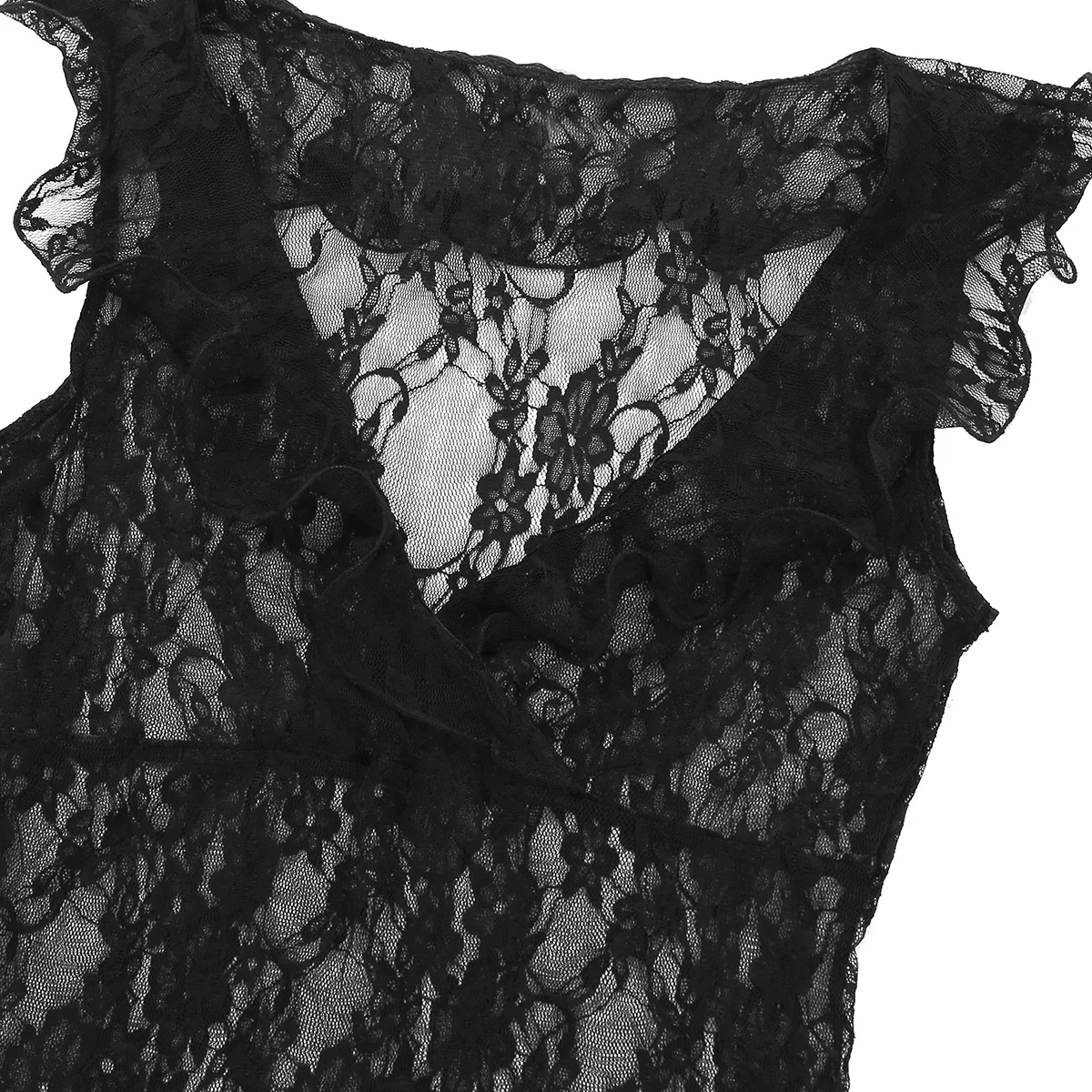 Глубокий v-образный вырез, воротник с рюшами и без рукавов, обернутый спереди, просвечивающий дизайн, высокие вырезы.