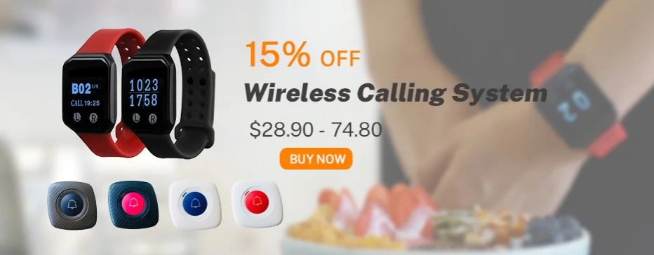 Система пейджера наручных часов беспроводного приемника может использоваться не только в ресторанах, отелях, клиниках, магазинах или в любом месте, где клиент ожидает их обслуживания. Также инструмент экстренного вызова для пожилых людей, беременных, детей с ограниченными возможностями.