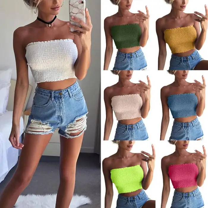 Тип одежды: женские трубчатые Топы без бретелек, эластичные однотонные топы без рукавов на лето