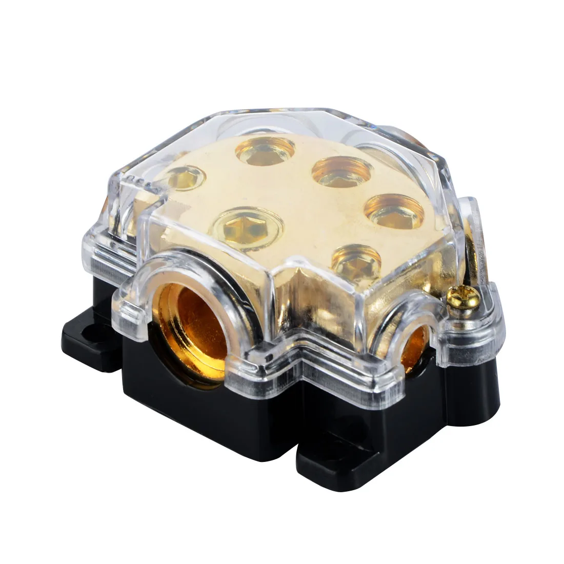 Название продукта: распределительный блок питания автомобиля; Подходит для: ANL предохранитель Тип: 5 способов; Материал: пластик, металл Основной цвет: синий, серебристый тон; Входной диаметр: 12,5 мм/0,49 дюйма Диаметр выхода: 10,4 мм/0,409 дюйма, 9 мм/0,354 дюйма, 6 мм/0,236 дюйма; Размер: 67x53x30 мм/2,6x2,1x1,2 дюйма (Д * Ш * В)