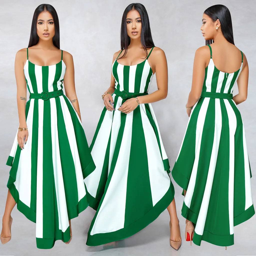 Женское модное асимметричное Полосатое платье без рукавов с v-образным вырезом и высокой талией
