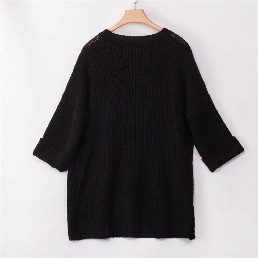 Модный женский трикотажный Однотонный пуловер с длинным рукавом и круглым вырезом, с карманом, свитер, блузка