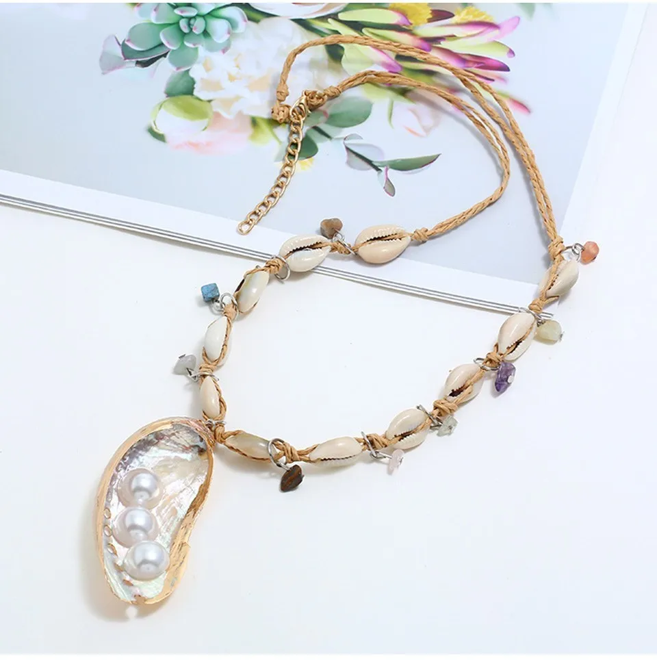 JOUVAL Бохо Большой жемчуг морской ракушки подвеска ожерелья для женщин Многослойные Длинные Подвески камень раковины ожерелье кисточкой летние ювелирные изделия