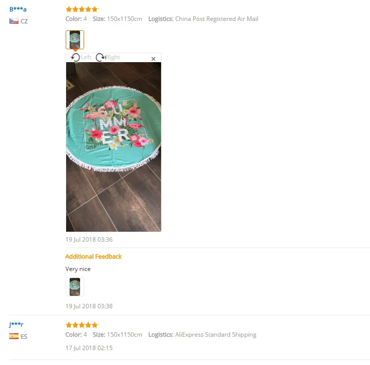 Упаковка:Пляжное полотенце, 1 шт. Обратите внимание, что небольшая разница в цвете должна быть приемлемой из-за освещения и экрана Покупатель показывает: Сотрудничество по оптовой и прямой доставке: Для оптовой продажи: мы предлагаем скидку и бесплатную доставку экспресс-почтой, которая занимает 3-8 дней. Для дропшиппинг: мы отправляем товары непосредственно вашим клиентам и не оставляем информацию о нас, если вы хотите. Как отследить посылку? Вы можете отследить свою посылку на веб-сайте с вашим номером отслеживания: на веб-сайте отслеживания 17. Что я могу сделать, когда время покупки истекает? Если время вашей покупки истекает, пожалуйста, свяжитесь с нами. Мы продлим его для вас. Чтобы ваши деньги и заказ были защищены Aliexpress.