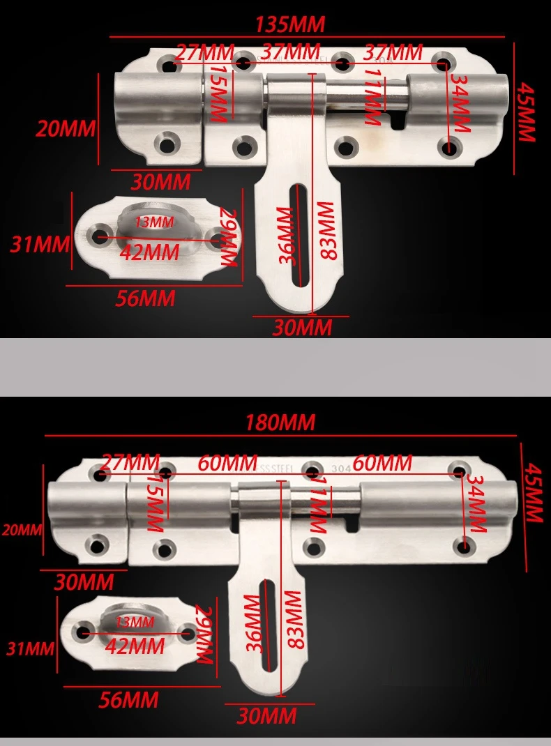 1. Материал: нержавеющая сталь 2. Толщина: 1,77 мм утолщение, чтобы создать 3. Процесс: чертеж 4. Метод установки: пробивая установка Стиль: простой фасон 6. Характеристики продукта: нержавеющая сталь, прочная, прочная, легко устанавливается 7. Применимый материал двери: деревянная дверь 8. Толщина секции 1,7 мм, толщина секции B 2 мм. 9. Изделие не носит замок. 10. Посылка включает в себя: 1 х дверная защелка