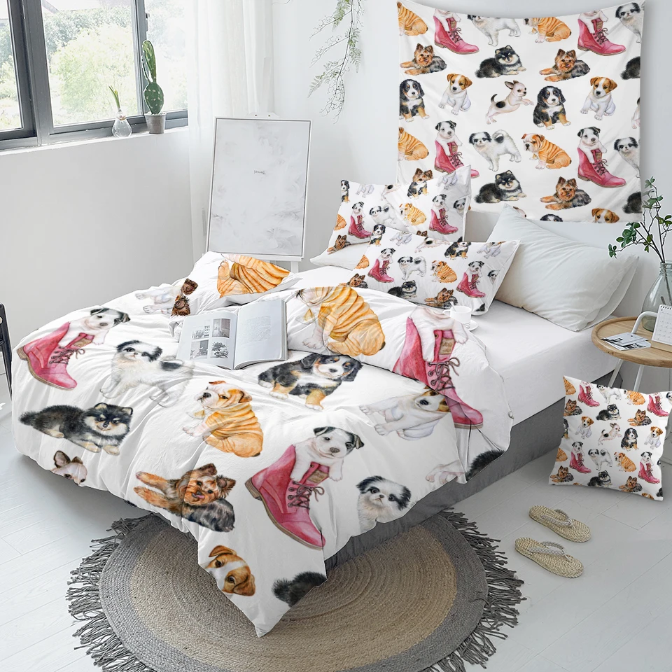 Название товара:Комплект постельного бельяУпаковочный лист:1 * пододеяльник + 2 * наволочкиТкань:ПолиэстерСезон:Весна, лето, осень, зимаОсобенности:Эти дизайны включают в себя коллекцию милых щенков с различной осанкой, добавляют Забавный штрих к вашей спальне.Рекомендации по уходу за постельным бельем:1) Если для сочетания Вам дополнительно требуется простынь, пожалуйста, свяжитесь с нами.
