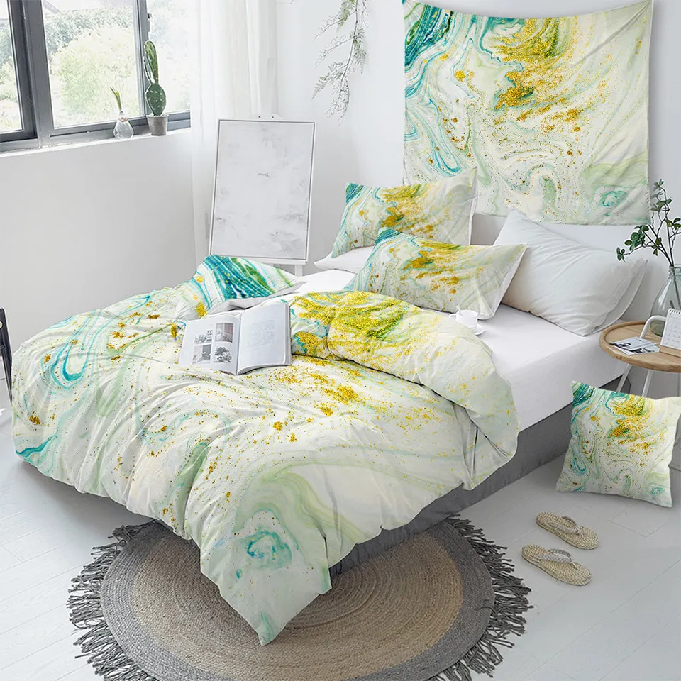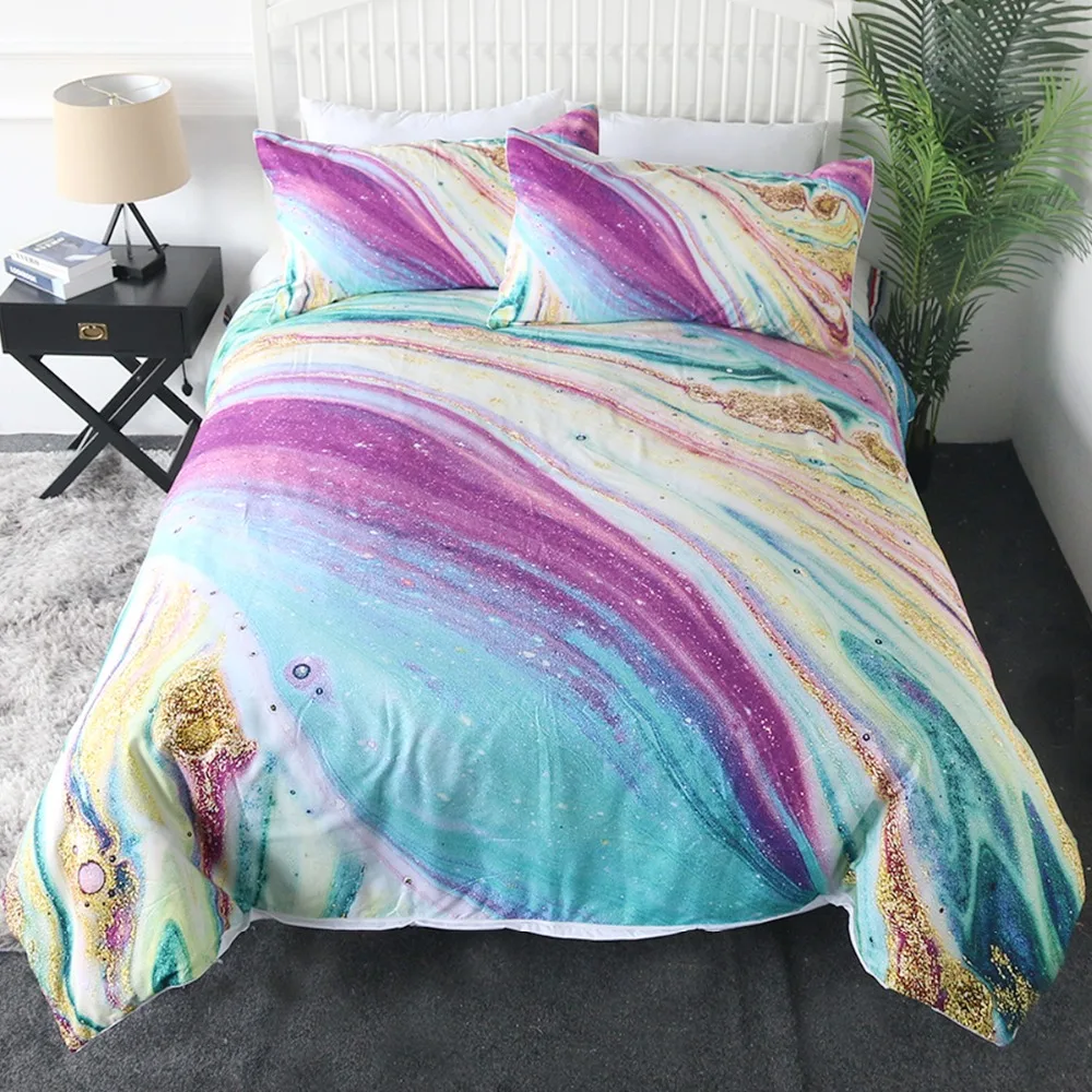 Название товара:Комплект постельного бельяУпаковочный лист:1 * пододеяльник + 2 * наволочкиТкань:Салфетка из микрофибрыСезон:Весна, лето, осень, зимаОсобенности:Модный Элегантный Пододеяльник с мраморным камнем радужных цветов и золотым рисунком идеально подходит для стильного человека.Рекомендации по уходу за постельным бельем:1) Если для сочетания Вам дополнительно требуется простынь, пожалуйста, свяжитесь с нами.