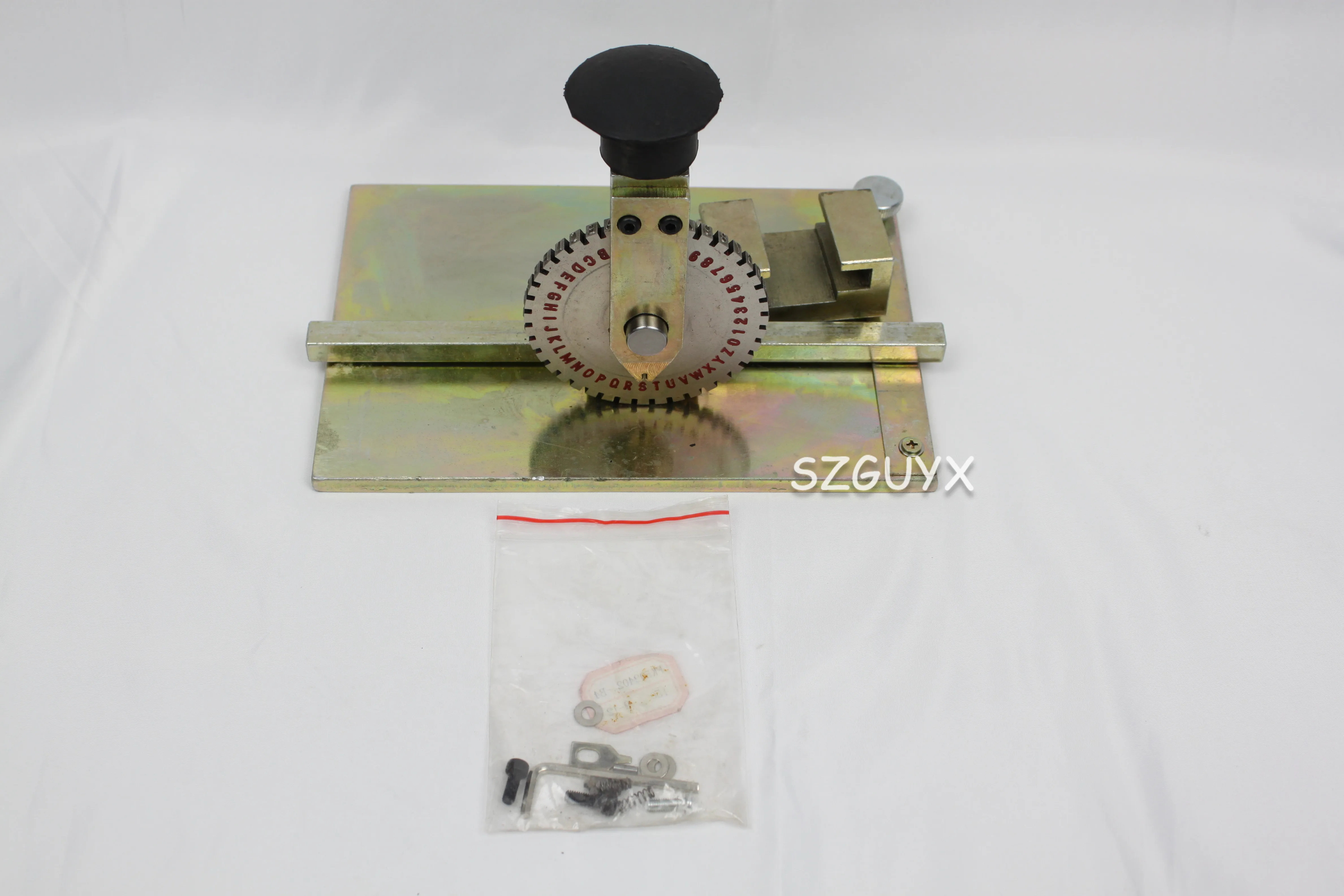 Модель: JTK-508 Тип: печатная машина Направление печати: односторонняя печать Применимые заготовки: самолет Тип упаковки: коробка Степень автоматизации: руководство Сталь пластины: сплав Сталь поворотные пластины прошли термообработку за счет высокочастотной закалки печатается с определенной глубины (0,1 ∽ 0,3 мм) буквы или цифры на металлическом знаке под действием внешней силы (вручную или резиновым молотком); Стальной Циферблат может поворачиваться на желаемую букву или цифровое автоматическое расположение карты, И преобразование слов может быть легко осуществлено; Положение маркировки и расстояние между линиями можно вручную отрегулировать механическим механизмом; Различные высоты слов могут быть реализованы путем замены циферблата; длина формы составляет менее 185 мм, а высота-менее 2 мм. Знаки формы могут быть штампованы и выгравированы. Характеристики Полезная модель имеет преимущества небольшого объема, светильник вес, удобное и удобное управление, аккуратные офисной бумаги, форма и четкими линиями и различных размеров шрифта. Материал стальной пластины; Сталь с намоткой 12 твердость: 58-60HV Прямая: 84 мм внутреннее отверстие: 14 мм Нет. 2; Высота 2 мм ширина 1,2 мм ширина зуба 4 мм Толщина: 6 мм 2,5 Высота 2,5 мм ширина 1,4 мм ширина зуба 4 мм Толщина 6 мм Без образования легкой пены. 3 Высота 3 мм ширина 1,6 мм ширина зуба 4 мм Толщина 6 мм Нет. 4 Высота 4 мм Ширина 2,1 мм зуб Ширина 4,5 мм Толщина 6 мм Нет. 5 Высота 5 мм Ширина 2,6 мм зуб Ширина 4,5 мм Толщина 6 мм Примечание: маленькие буквы в цифре (1) маленькие символы В символе (.) на английском языке маленькие символы (I) Большие символы (MW) Количество колес: Прописных букв: abcdefghijklmnopqrstuvwxyz Арабскими цифрами: 1234567890