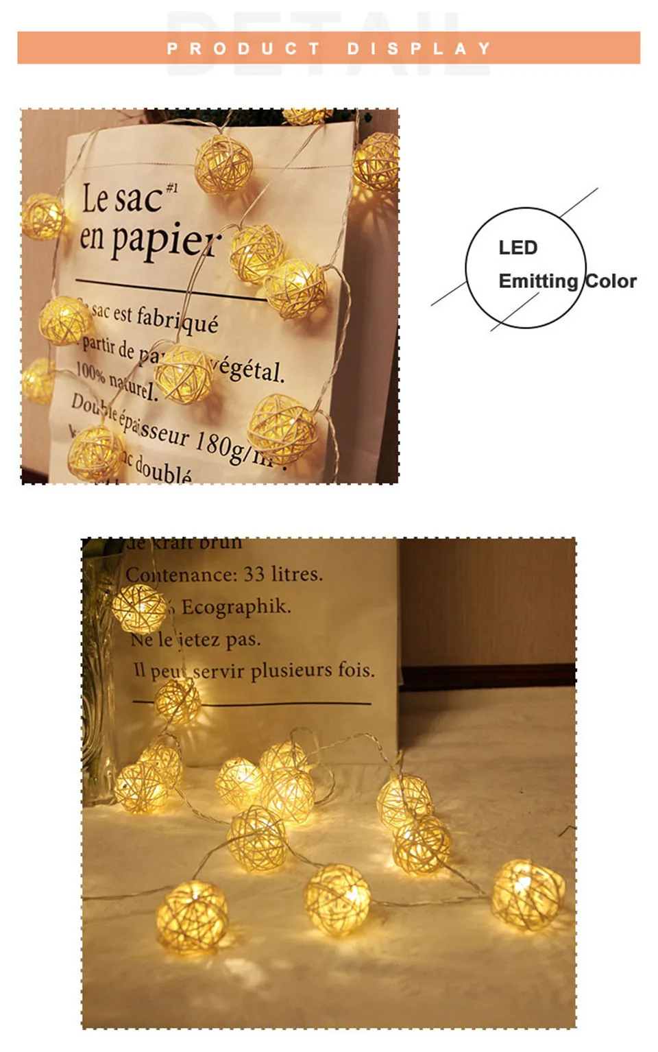Количество светодиодов: 40 светодиодов (с 40 шариками из ротанга)