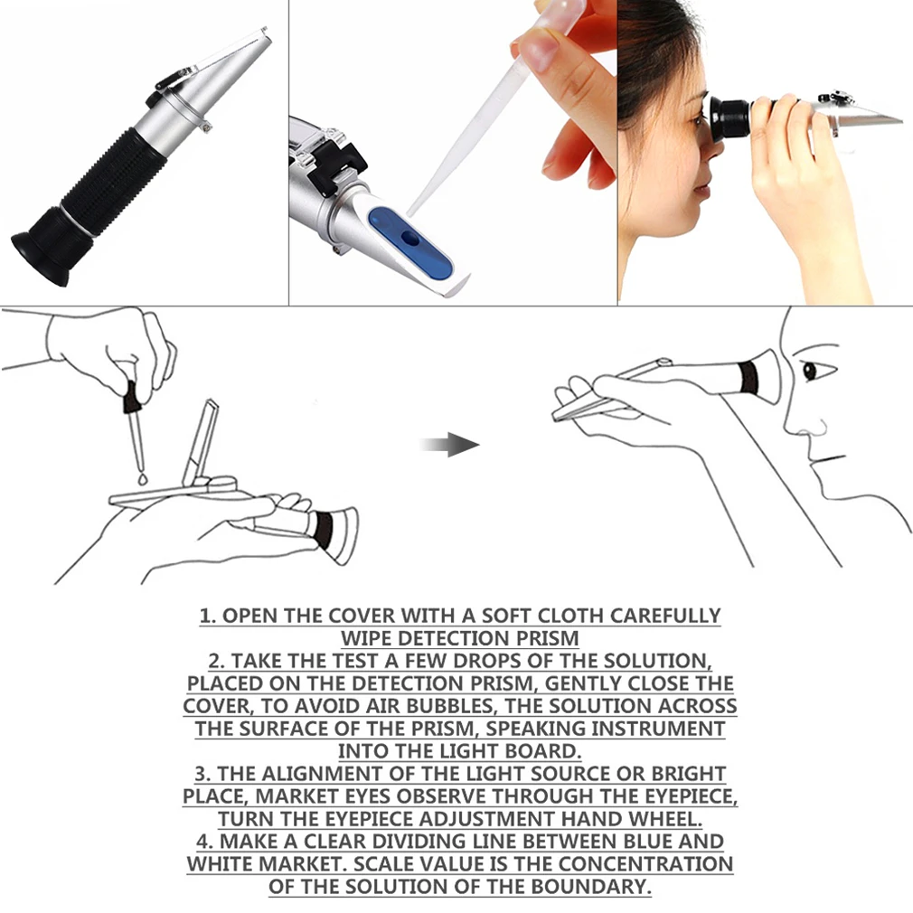 Ручной рефрактометр с сахарным раствором, рефрактометр для меда, пива, фруктов, Рефрактометр, жидкая сладость, сахариметр, измеритель концентрации, тест
