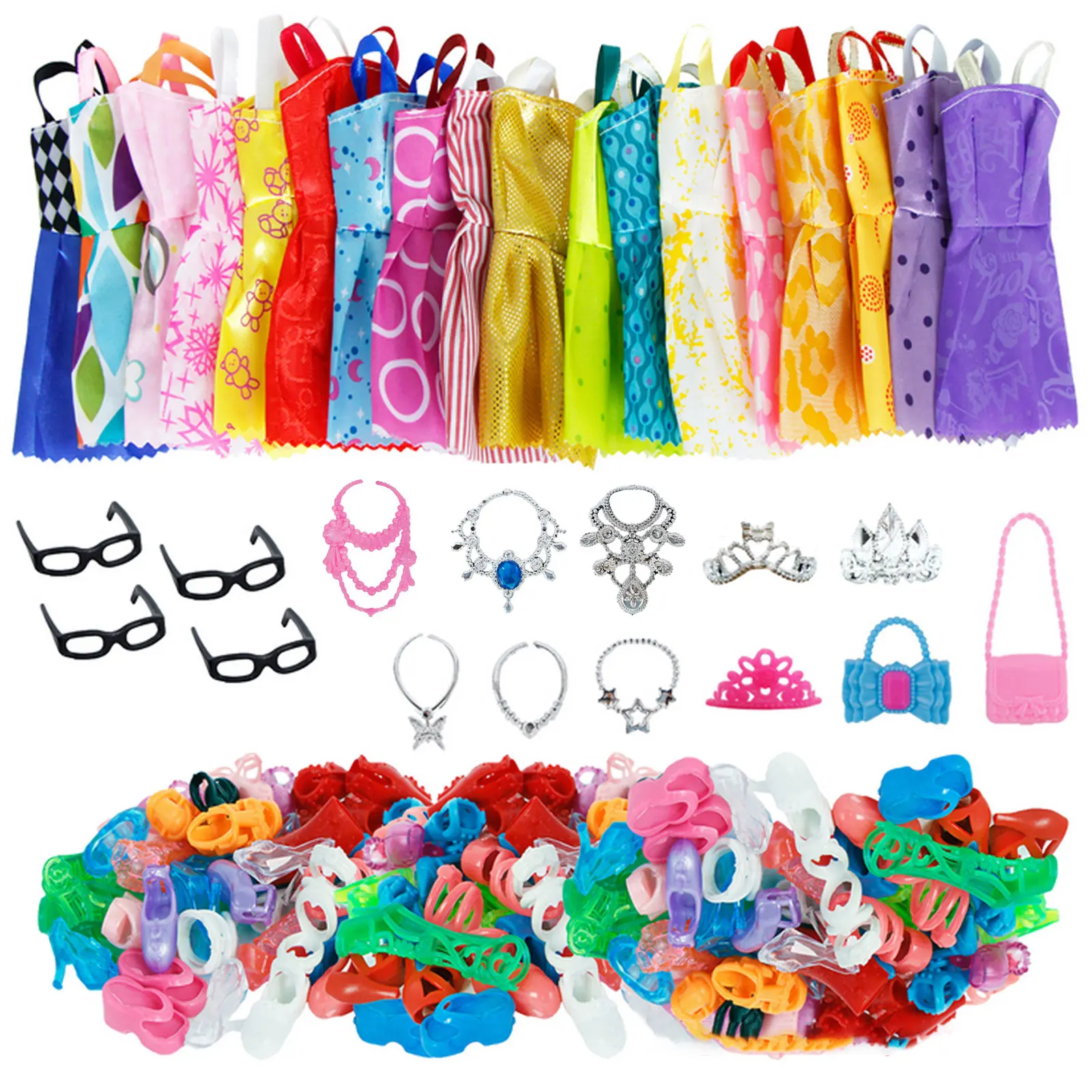Besegad 114 шт. обувь и платье для куклы, комплект аксессуаров, игровой набор, ролевые игры, игрушки для кукол Барби, подарок для девочек, случайный цвет