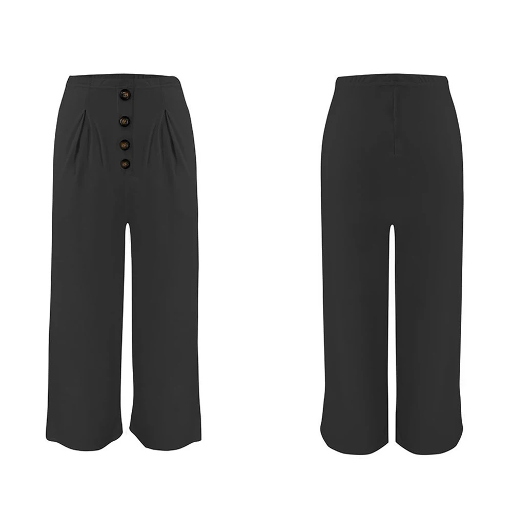 Женские летние широкие брюки до щиколотки, повседневные свободные брюки с высокой талией и пуговицами