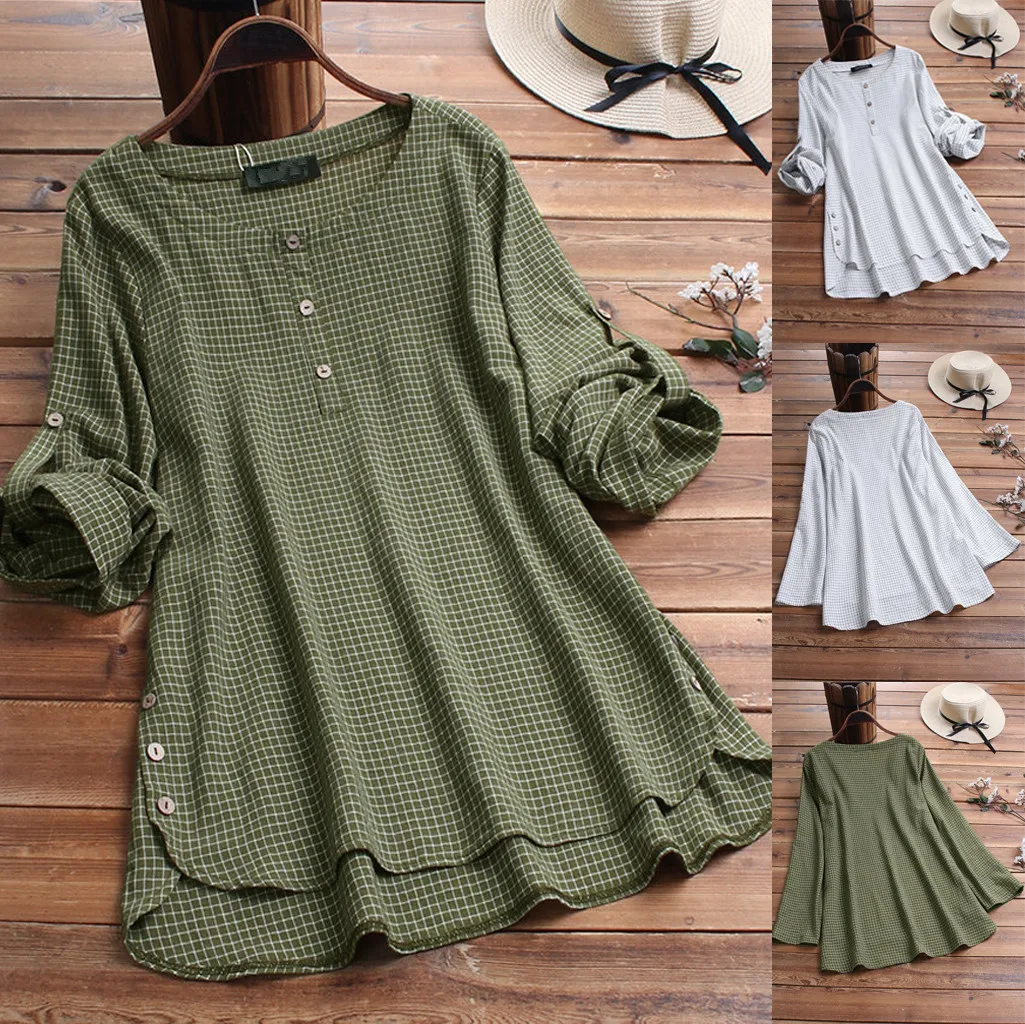 Женская блузка свободного кроя Harajuku, Клетчатая блузка с длинным рукавом и пуговицами, Женские топы и блузки, новинка 2019
