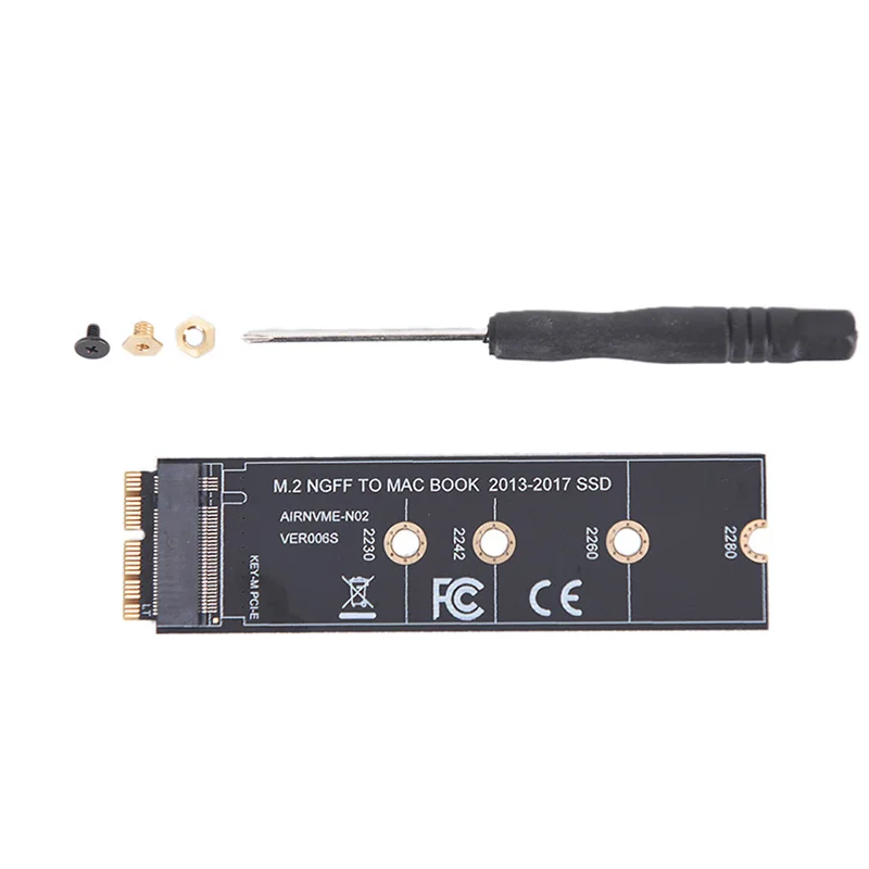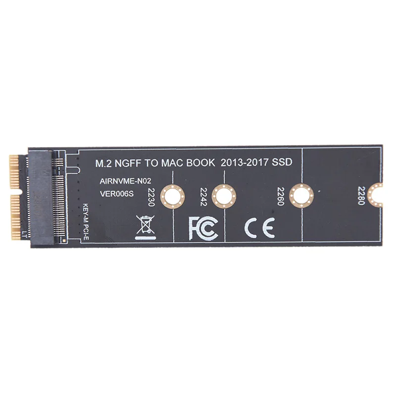 1. Этот продукт только для поздней версии 2013 Macbook air A1465 и A1466, для поздней версии 2013 MacBook Pro retina A1398 A1502, пожалуйста, подтвердите, что ваш ноутбук подходит. Адаптер поддерживает 2230, 2242, 2260, 2280 Размер M.2 NGFF PCIe x4 AHCI протокол SSD, он не может поддерживать M.2 NGFF PCIe x4 NVMe твердотельные накопители.