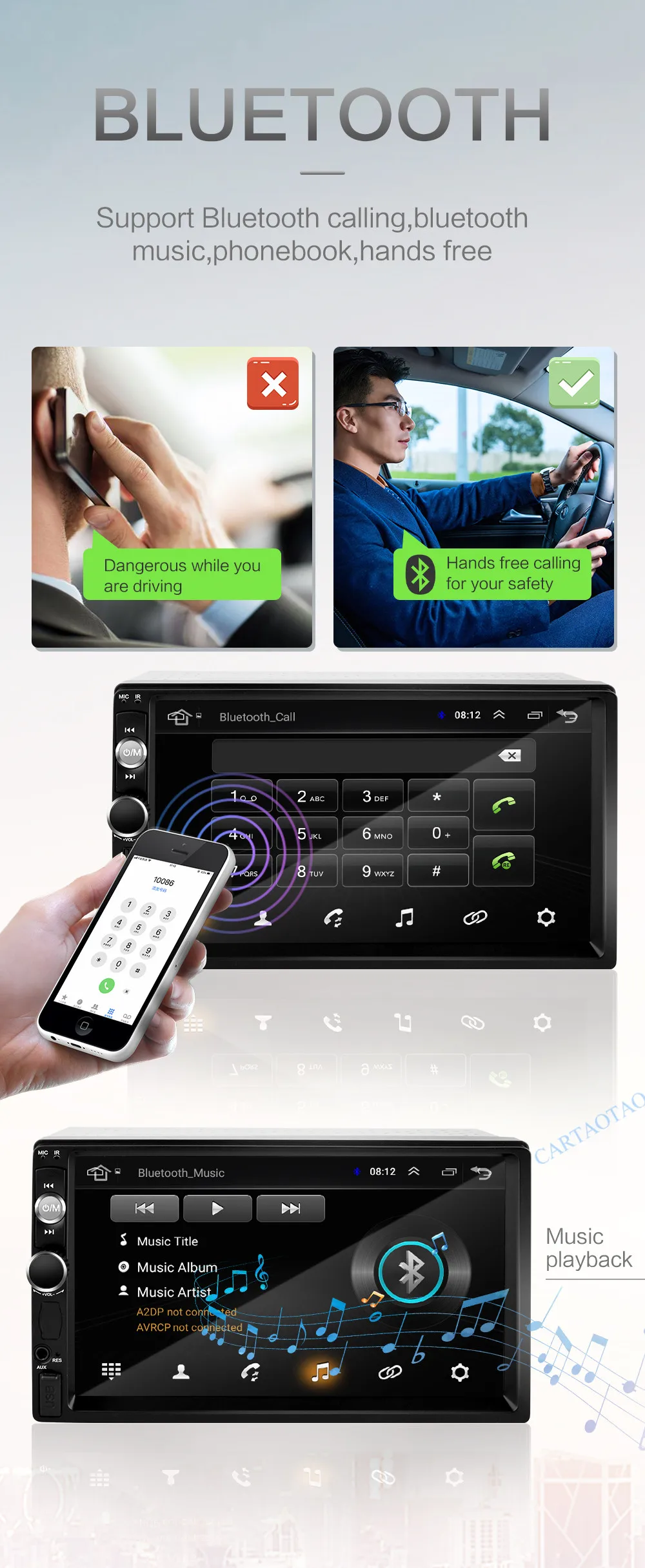 Голосовой Телефон, более практичный для вождения Поддержка мобильного телефона + Bluetooth музыка (поддержка Bluetooth телефонной книги) Обратите внимание на правильный способ совершать и принимать звонки во время вождения. Поддержка OBDII проверка информации о неисправности транспортного средства