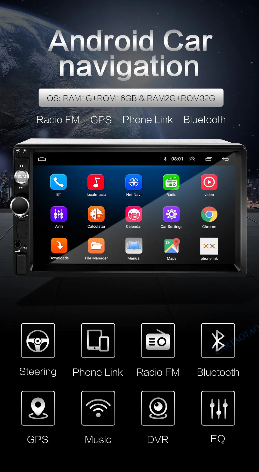 ОС: Android 8,1 GO ОЗУ: 1G \ 2GBDDR3 ПЗУ: 16 Гб \ 32 Гб Разрешение: 1024*600. Емкостный сенсорный экран Поддержка: Naviteld для российского клиента Процессор: A7/1.3GHz4x4 Звуковой процессор: TDA7388 Поддерживается подправить 2 din Android 8.1A мультимедийный плеер для большинства старых автомобилей Это широко известный dvd-плеер автомобиля... Но он не может воспроизводить DVD диски! Он может подключаться к текущему dvd-плееру через USB