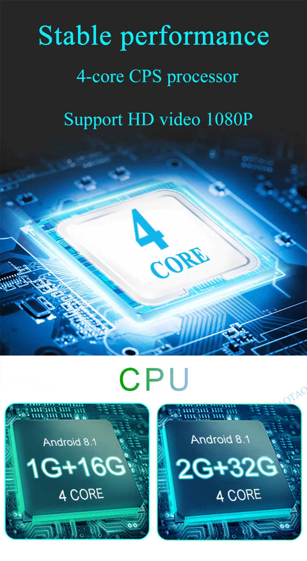 1 、 Процессор Cuatro nukleos, iniciados y terminadamente, es la mejora general del rendimiento de procesamiento Poderoso: четырехструнная гитара Memoria de funcionamiento de alta velocidad (ram): 1 г 2G Мемория капрал интеграда (rom): 16G/32G 2 、 красочные светильник панельный светильник 3. Воспроизведение hd-видео 4. Поддержка HD аудио выхода