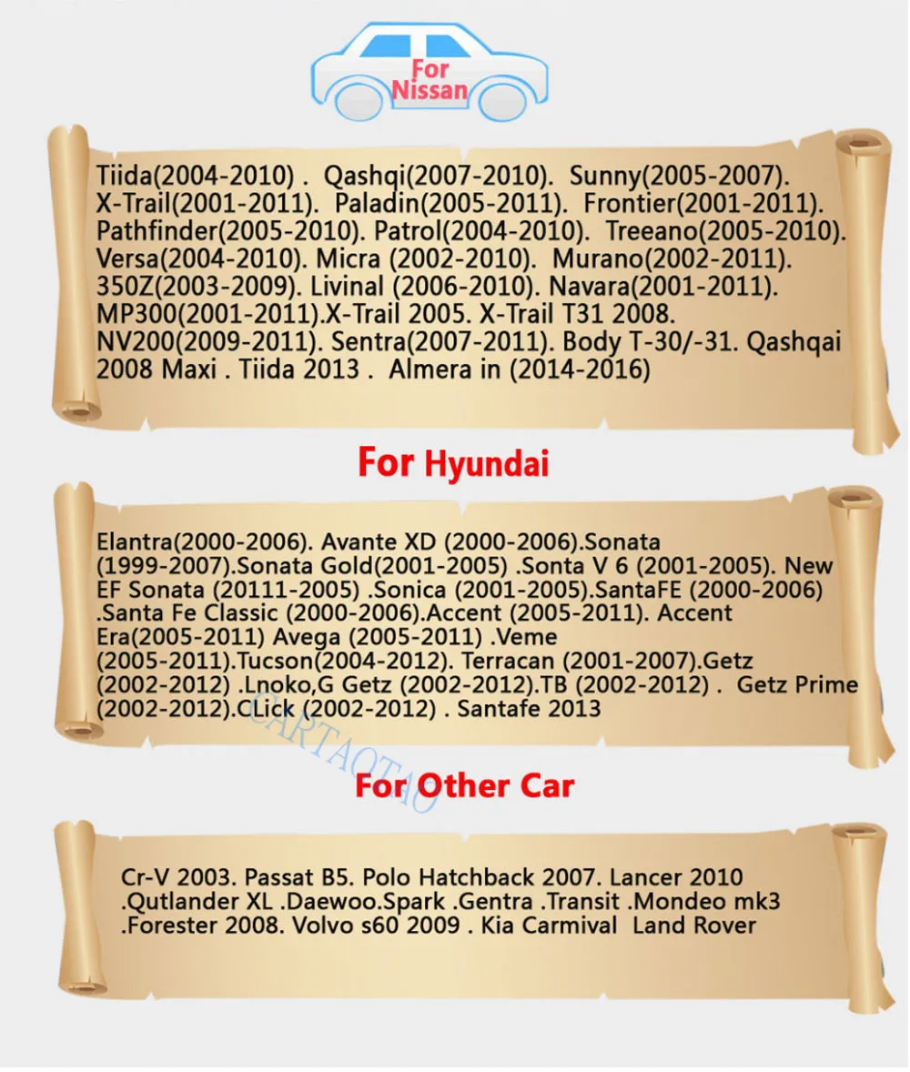К списку моделей относится: hyundai Nissan Honda Автомобиль Volkswagen Kia и другие старые модели!