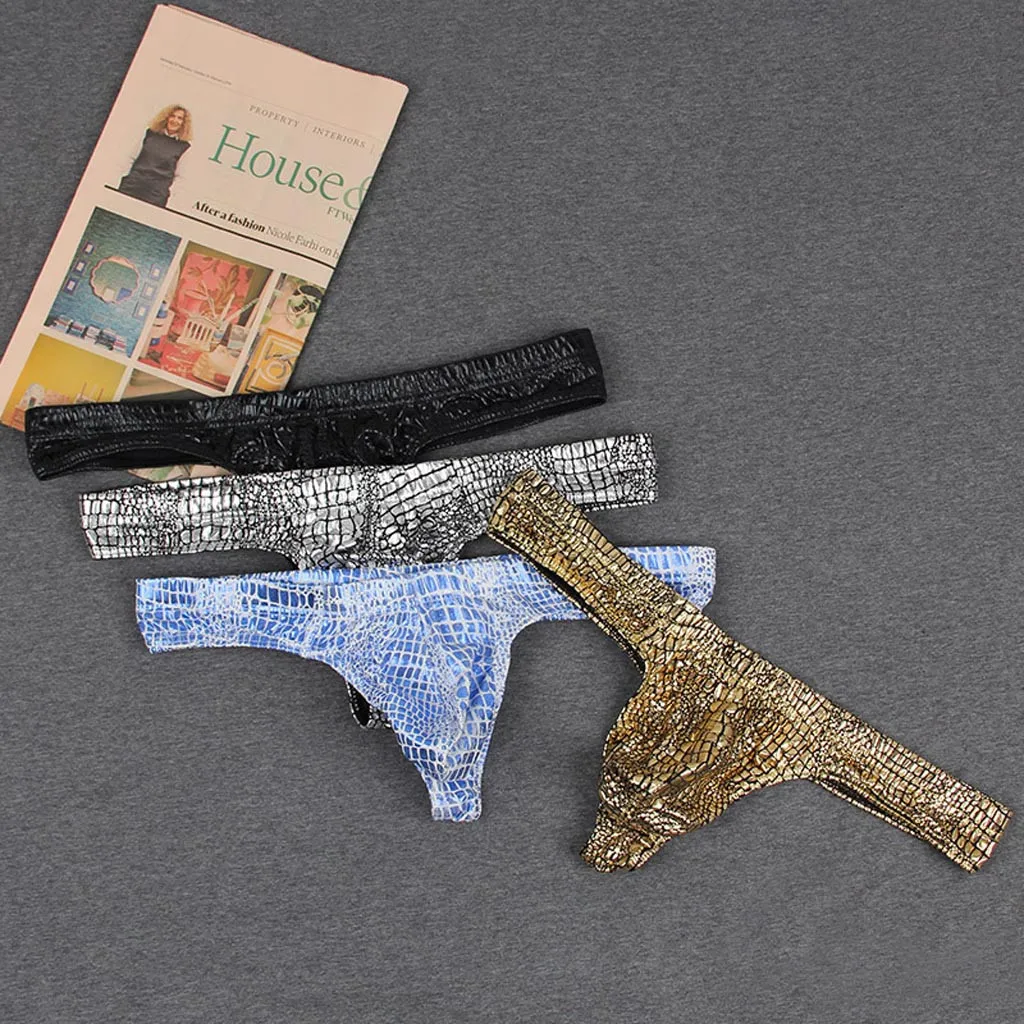 Низкая талия полиэстер змеиная ткань U выпуклые сексуальные мужские стринги
