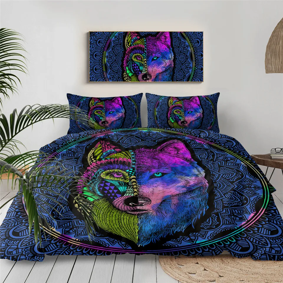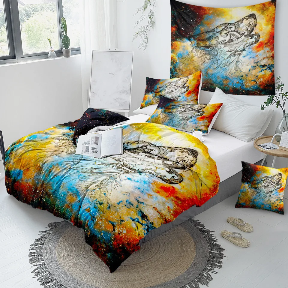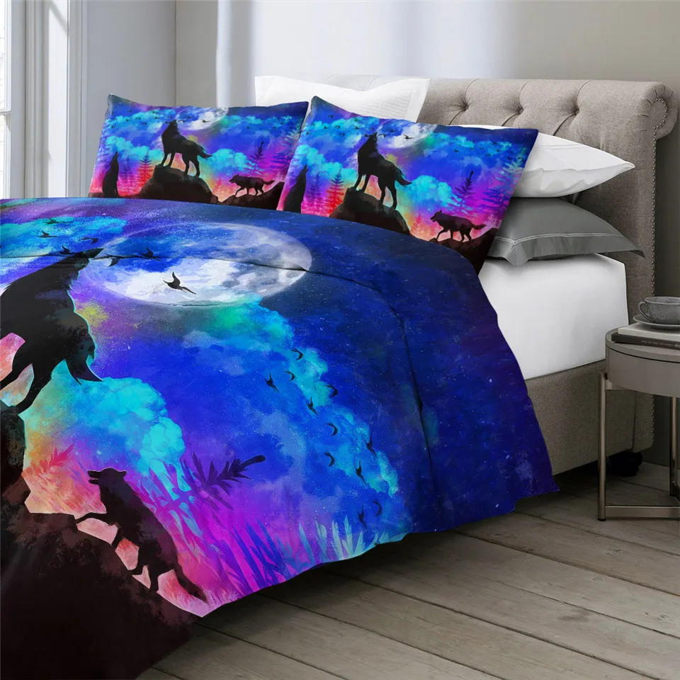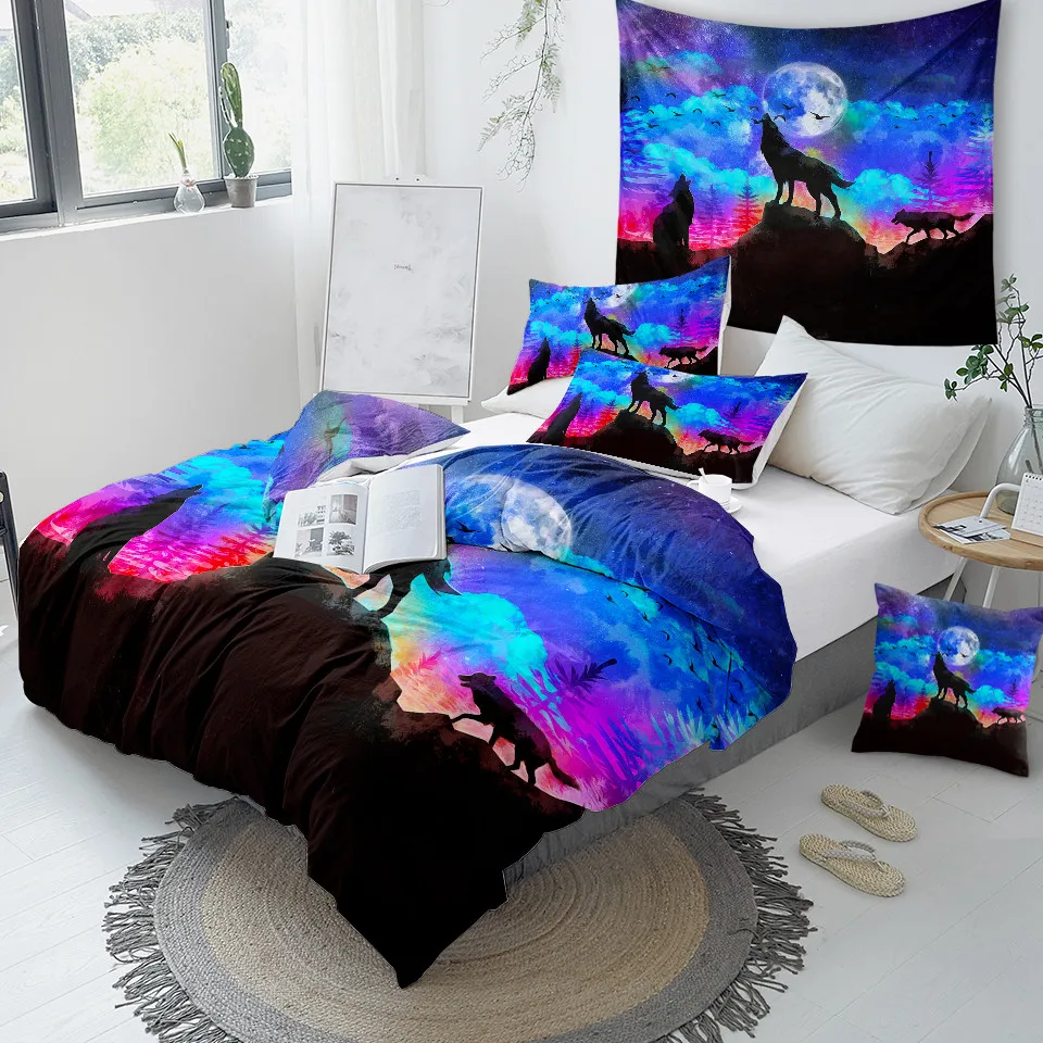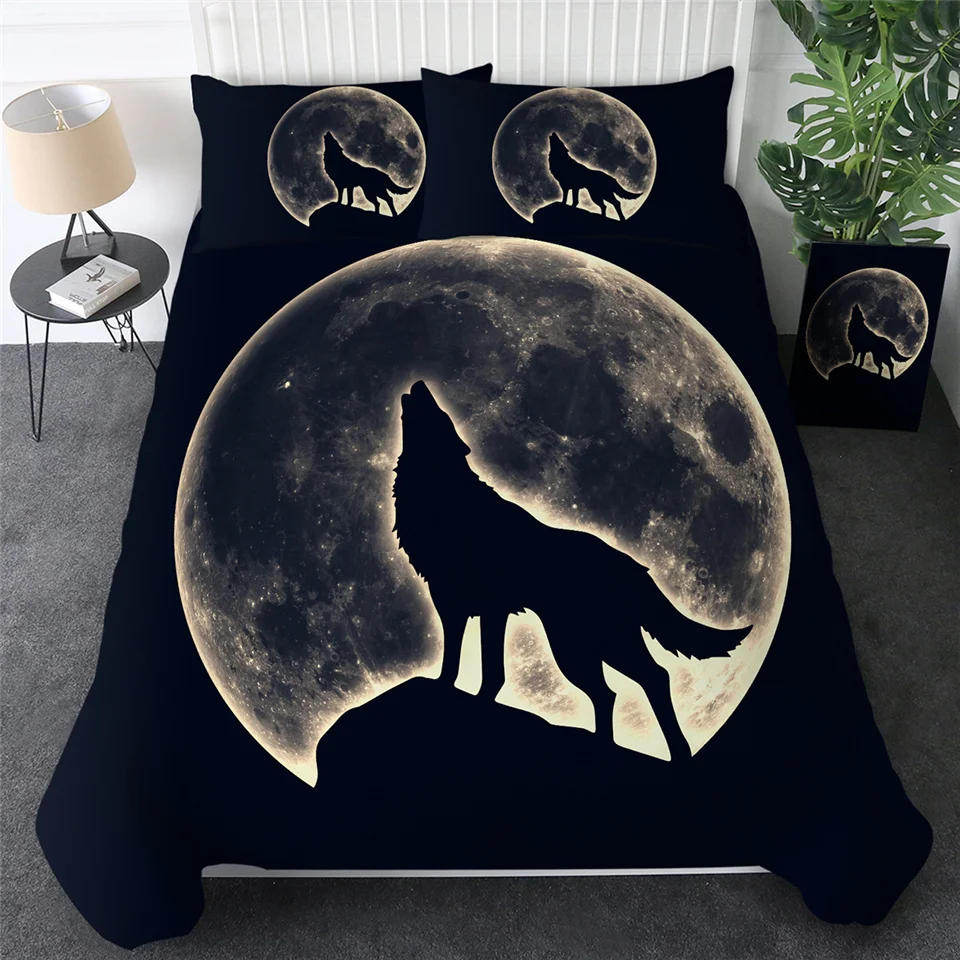 Название товара:Комплект постельного бельяУпаковочный лист:1 * пододеяльник + 2 * наволочкиТкань:ПолиэстерСезон:Весна, лето, осень, зимаОсобенности:Воющий волк стоит на скале, с гигантским фоном Луны. Классный дизайн для любителей животных.Рекомендации по уходу за постельным бельем:1) Если для сочетания Вам дополнительно требуется простынь, пожалуйста, свяжитесь с нами.