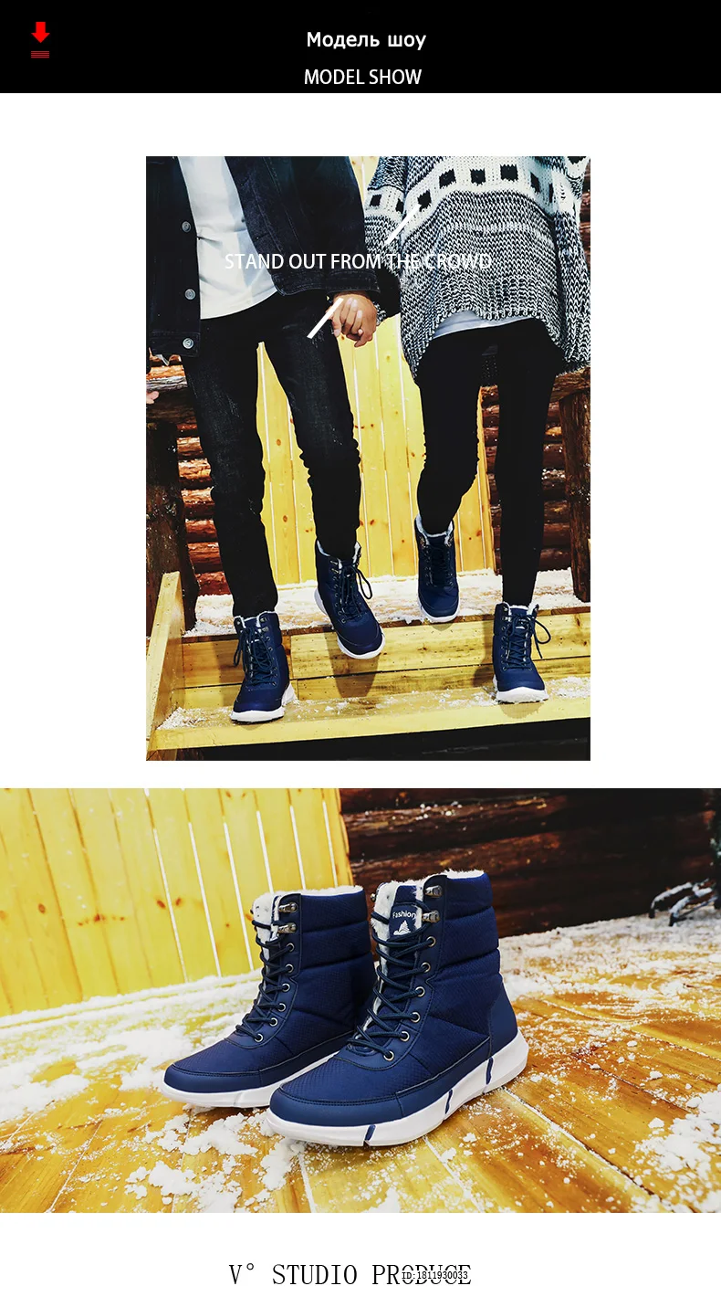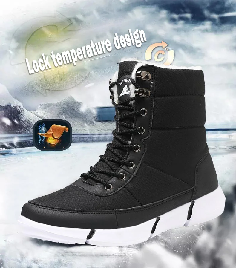 Новинка 2019 года; модные повседневные зимние теплые ботинки на меху; Повседневная Водонепроницаемая Мужская обувь с высоким берцем; Уличная обувь на шнуровке; теплые ботинки для бега