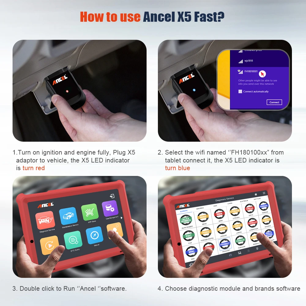 ANCEL выпустила разъем X5 с 10,1 дюймовым планшетом, добавив больше функций в программное обеспечение.