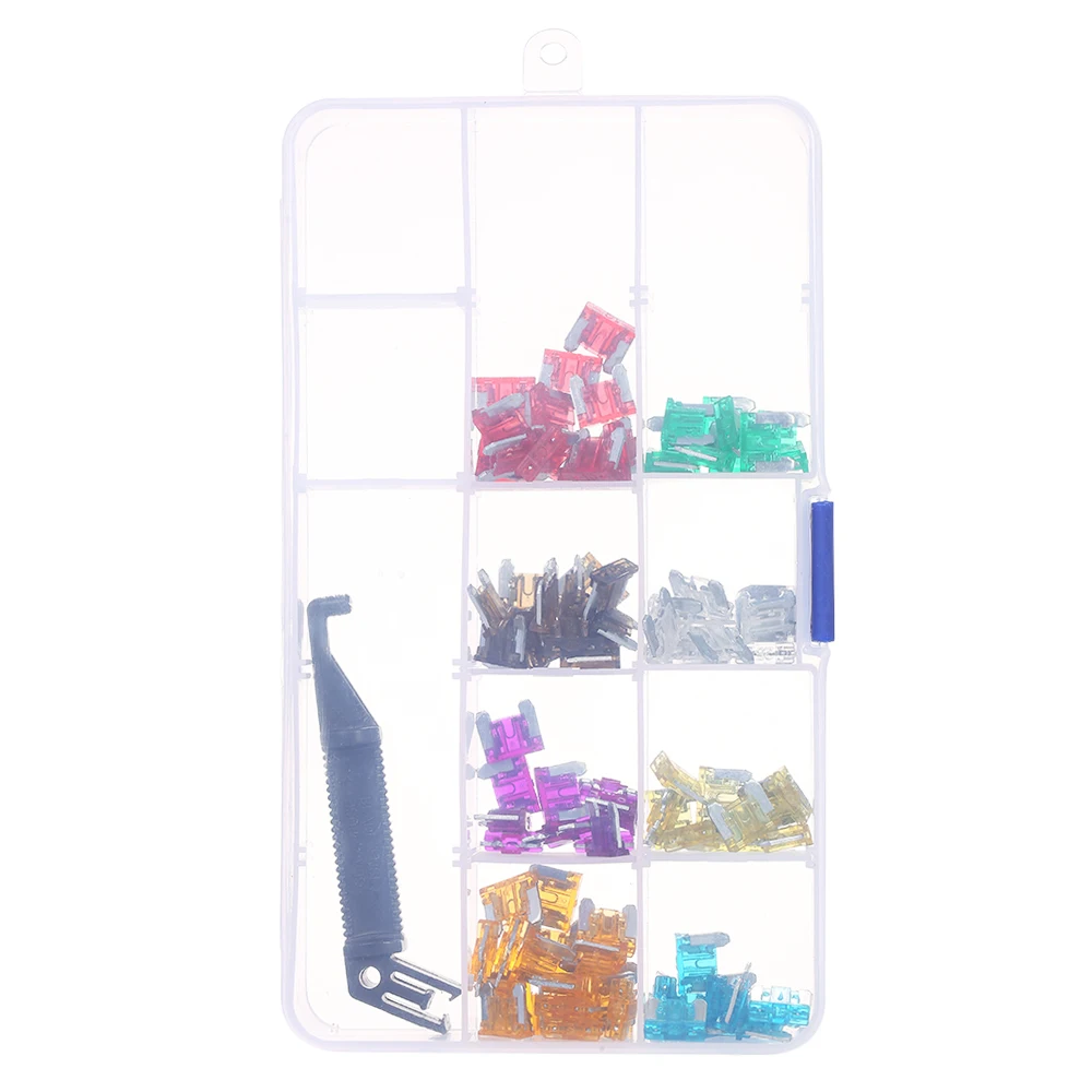 100 шт. ассорти мини стандартный предохранитель лезвия 3A 5A 7.5A 10A 15A 20A 25A 30A набор микропредохранителей с черным съемником для авто грузовика автомобиля лодки SUV автомобильные Сменные предохранители