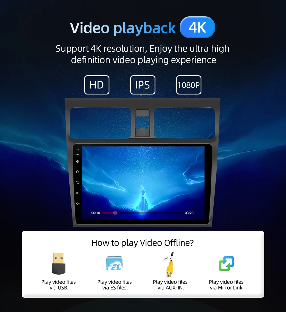Сенсорный экран + радио + FM/AM + RDS + gps-навигация + карта + Wifi + Bluetooth + управление рулевым колесом + сплит-экран + USB + SD + AUX вход/выход + зеркальная ссылка + задний камера + сабвуфер + Play Sore + EQ + набор обоев + логотип автомобиля + 3G/4G + TPMS + DAB + OBD 2 + DVR + TV