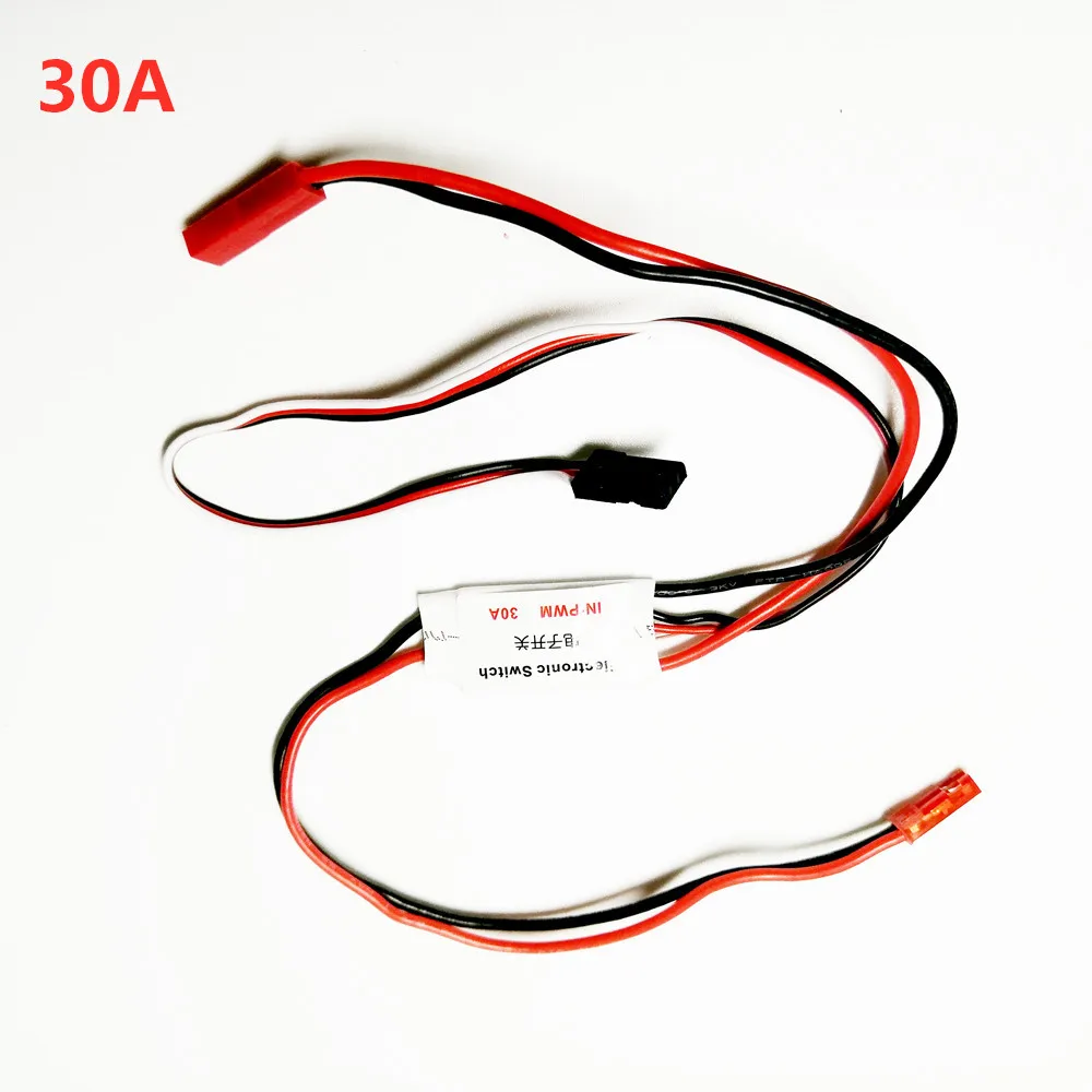 5A 10A 30A 1-6s Электронный Переключатель PWM 3,7-27V вход для RC FPV модели самолетов светодиодный светильник контроллер переключатель двигателя RC прерыватель 5А/10А RC управляемый переключатель Этот модуль-хороший маленький релейный переключатель, управляемый запасным вспомогательным каналом на вашем приемнике. Идеально подходит для переключения света, звука и любых других вспомогательных электрических элементов. Когда PWM обязанность больше чем 1500us, переключатель включится; Когда PWM обязанность меньше 1400us, выключатель выключится. Характеристики: RX длина свинца: 100 мм Мощность in/out длина свинца: 100 мм (каждый) Импульсный ток нагрузки (постоянный ток):5A или 10A (непрерывный ток) Входное напряжение (постоянный ток):5-28 в Нормальный режим Модуль может считывать ширину импульса в диапазоне от 400 до 2600us. Если ширина импульса более 1800us, выключатель MOSFET закроется, если менее 1200us, переключатель MOSFET откроется. Функция безопасной защиты Этот модуль имеет функцию безопасной защиты, которая уменьшает вероятность неожиданной активации. Ниже 2 Условия режим безопасной защиты будет активен: 1. Пульс более 1800us при первом включении питания, переключатель MOSFET открывается. Светодиодный индикатор мигнет, вы должны перемещать вход в положение выключения, затем будет активнее; 2. Сигнал плохой непрерывно для 500 мс, переключатель MOSFET открывается. Светодиодный индикатор мигнет. Когда сигнал хороший, устройство отключит режим безопасной защиты. Светодиодный Нормальный режим: Светодиодный индикатор включается при входном импульсе> 1800us; Светодиодный выключается при входном импульсе <1200us; Безопасный режим защиты: светодиодный индикатор быстро мигнет 30A RC управляемый переключатель: Большой ток, высокая надежность, поддержка высоковольтных приемников, компактный размер, легкий вес. 18AWG силиконовые провода для питания, супер мягкие силиконовые провода для сигнала, а также. Примеры применения: Пульт дистанционного управления модель автомобиля самолет светильник бар светильник ВКЛ и ВЫКЛ, простой в использовании-вставить переключатель канала Выключатель питания для различного источника питания и контролируемого оборудования (отключен к положительному полюсу, общий отрицательный) Электронное зажигание, выходная ступень может быть подключена к проводу сопротивления нагрева, электрический контроль запуска после этапа для увеличения реле, переключатель водяного насоса. Провод с высоким током 18AWG силикагелевый провод, вилка JST головка (входной разъем, выходной штекер), сигнальный провод также Изготовлен из супер мягкого силиконового материала провода, общая Длина шнура питания составляет около 20 см, вес переключателя составляет около 11 г. Характеристики: -Макс. Ток: 30A -Силиконовый кабель 18AWG -Разъем JST, длина кабеля 20 см -Вес: 11 г -Светодиодный индикатор -Предполагаемое управление 2 секциями, включение/выключение хода занимает половину путешествий для каждого. Когда переключатель включен, есть светодиодный светильник, указывающий, что ток не может превышать номинальное значение, в противном случае провод может нагреваться или гореть. Входное напряжение: 3,7-27 в Этот переключатель не подходит для управления светодиодными лампами. Посылка в комплекте 1 шт. пульт дистанционного управления 5A / 10A / 30A (отправляется по вашему выбору)