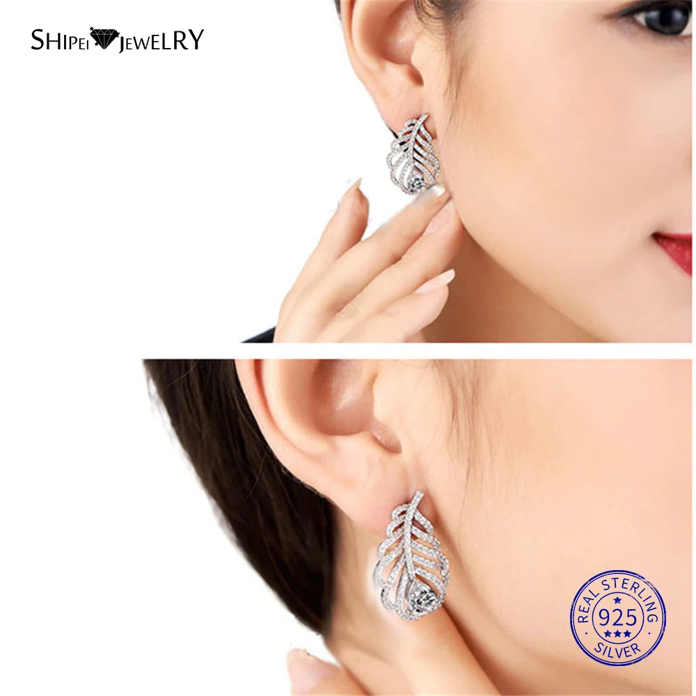 Шипай, хорошее ювелирное изделие, 100% 925 стерлингового серебра белым сапфиром из перьев, свисающие серьги для женщин, серьги Выпускной Рождественский подарок